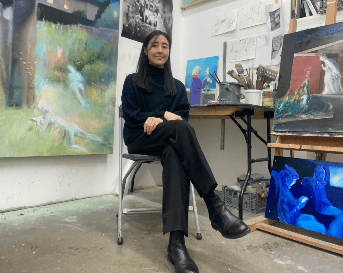 What emerges is a kind of painterly rehearsal, a space where gestures hesitate and symbols refuse closure. Ahn’s canvases hold their subjects in a state of fragile suspension, neither fully anchored to the world nor entirely severed from it. Time dilates, actions stall, and the viewer is left with the sensation of standing before a scene that is still deciding what it wants to become. In this unstable interval, her work opens onto a quietly charged psychological terrain—one that rewards slow looking and resists definitive interpretation.
