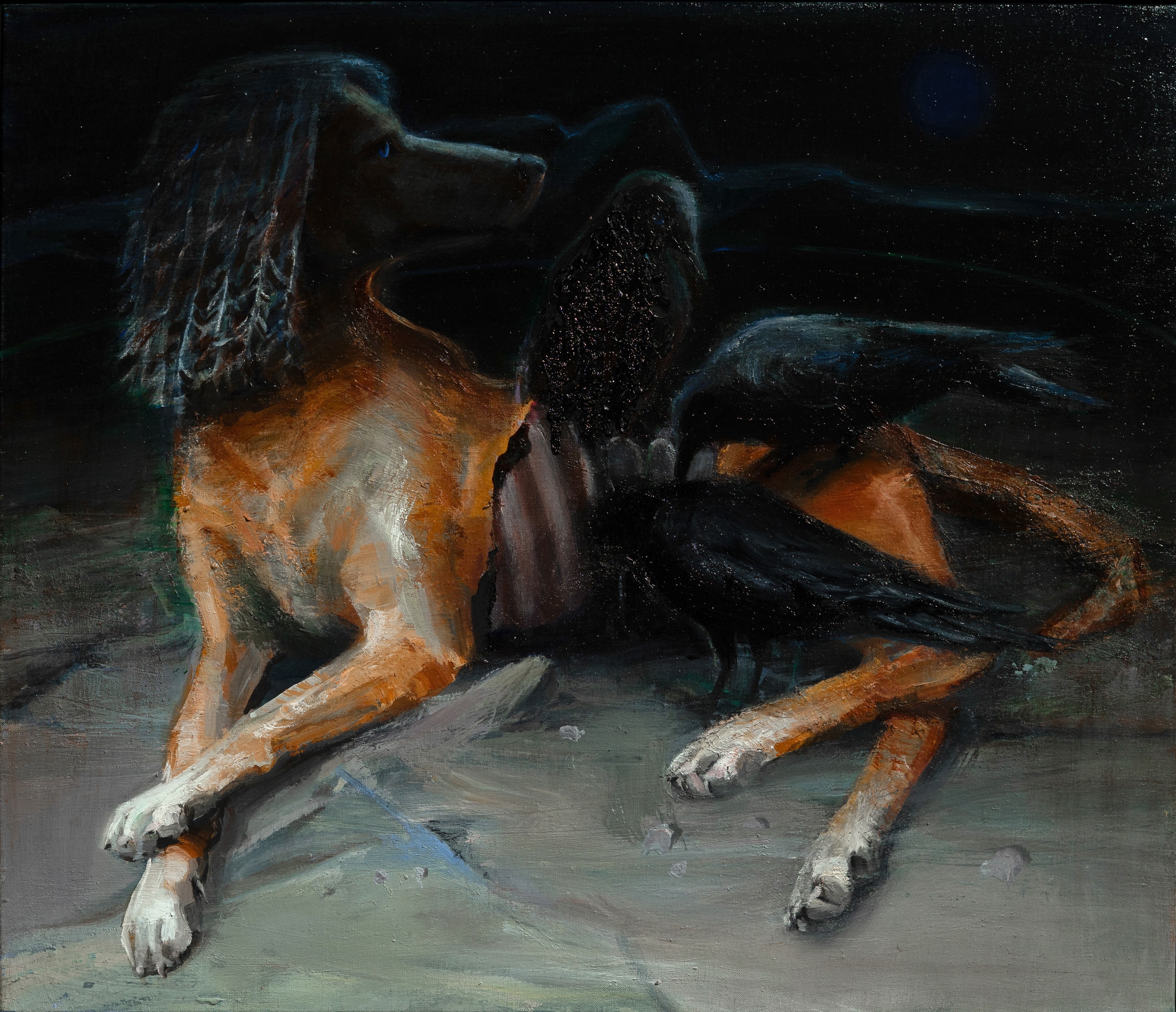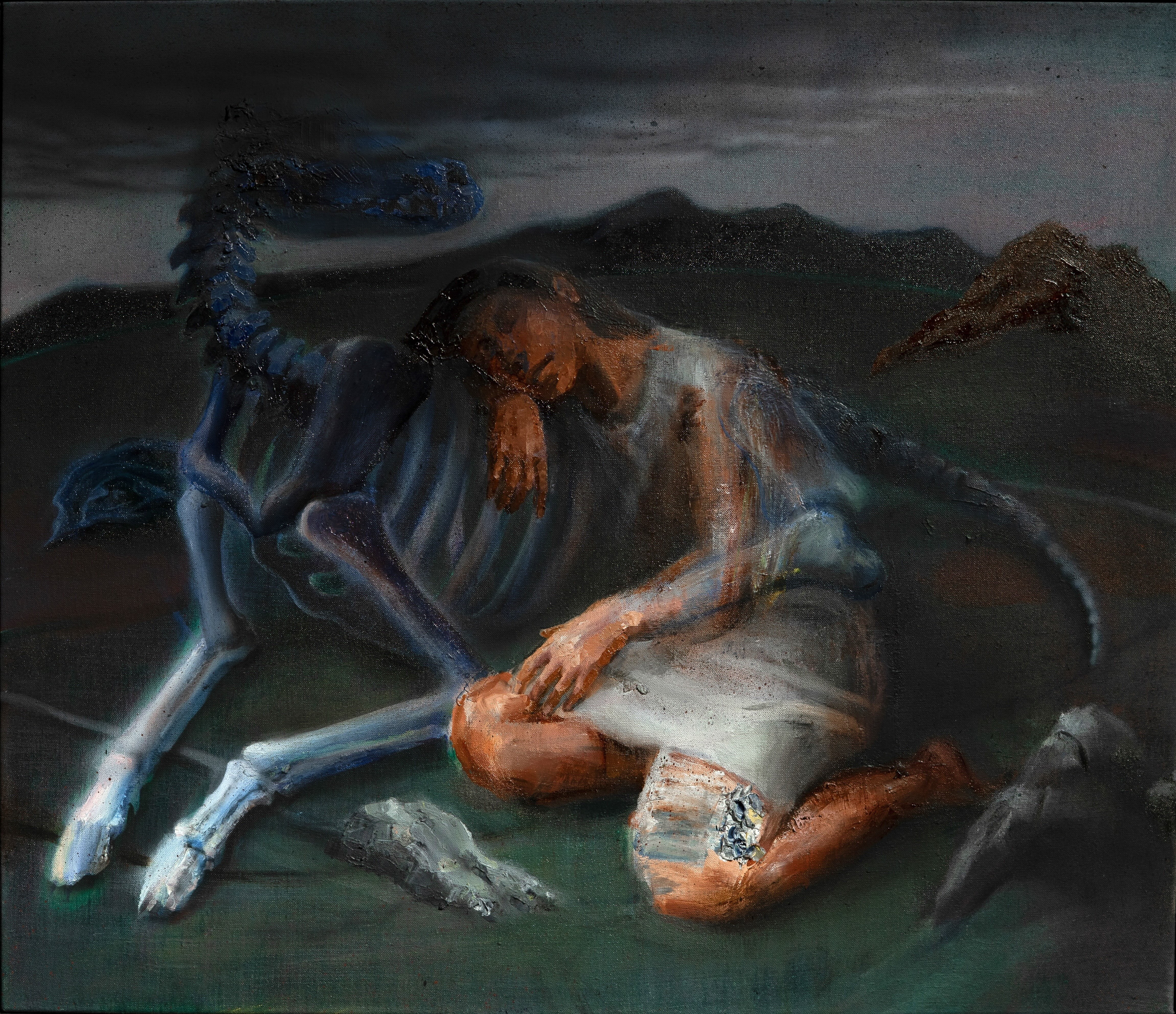 Soryun Ahn’s paintings unfold in a register where narrative never quite settles. Figures—sometimes human, sometimes slipping into animal or spectral form—occupy landscapes lit with an artificial, almost interrogative glow, as though caught in the middle of an unfinished scene. Myths, dreams, and private memories appear only as traces; she treats them not as stories to be reconstructed but as fragments to be rearranged, their meanings slipping as soon as they surface.