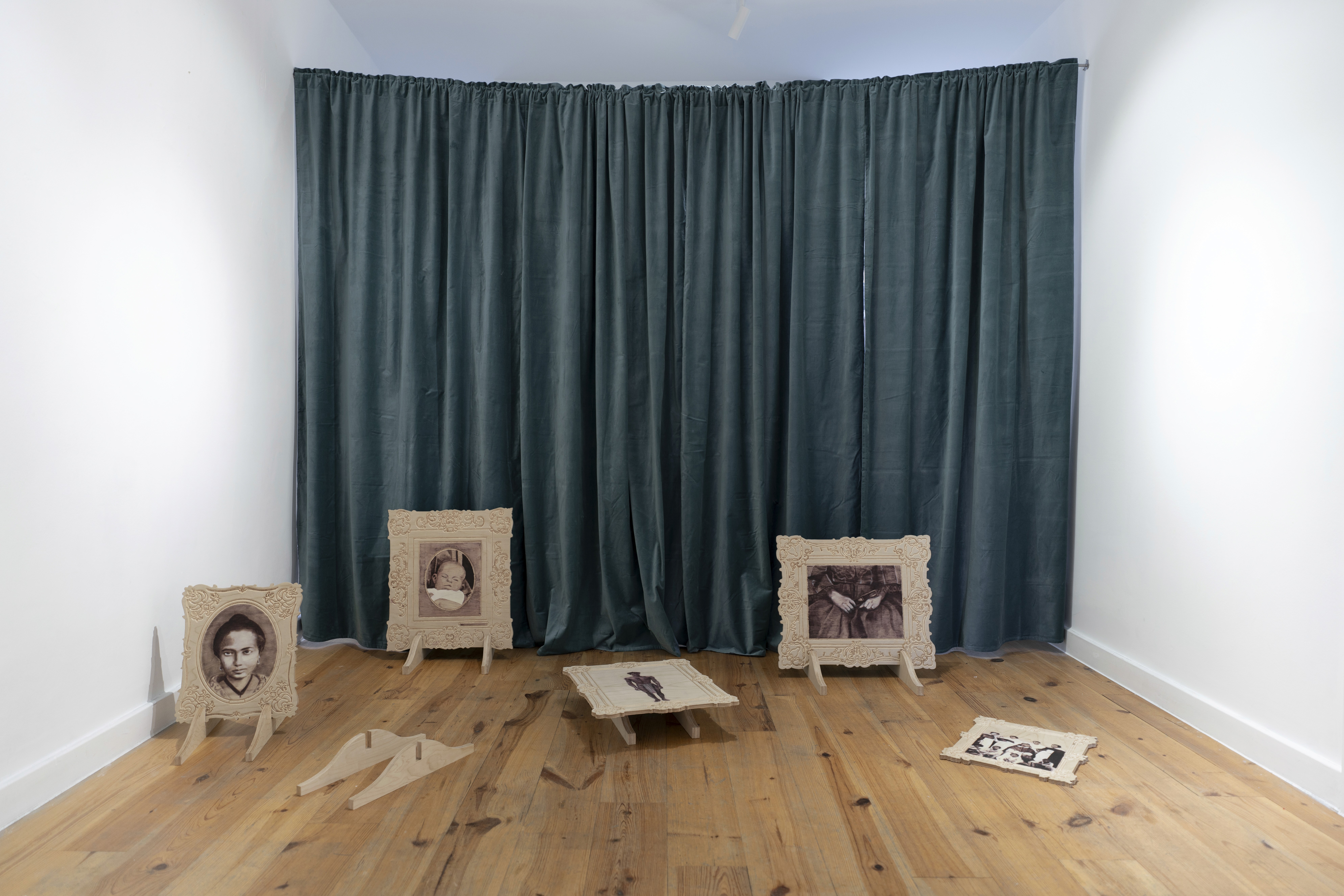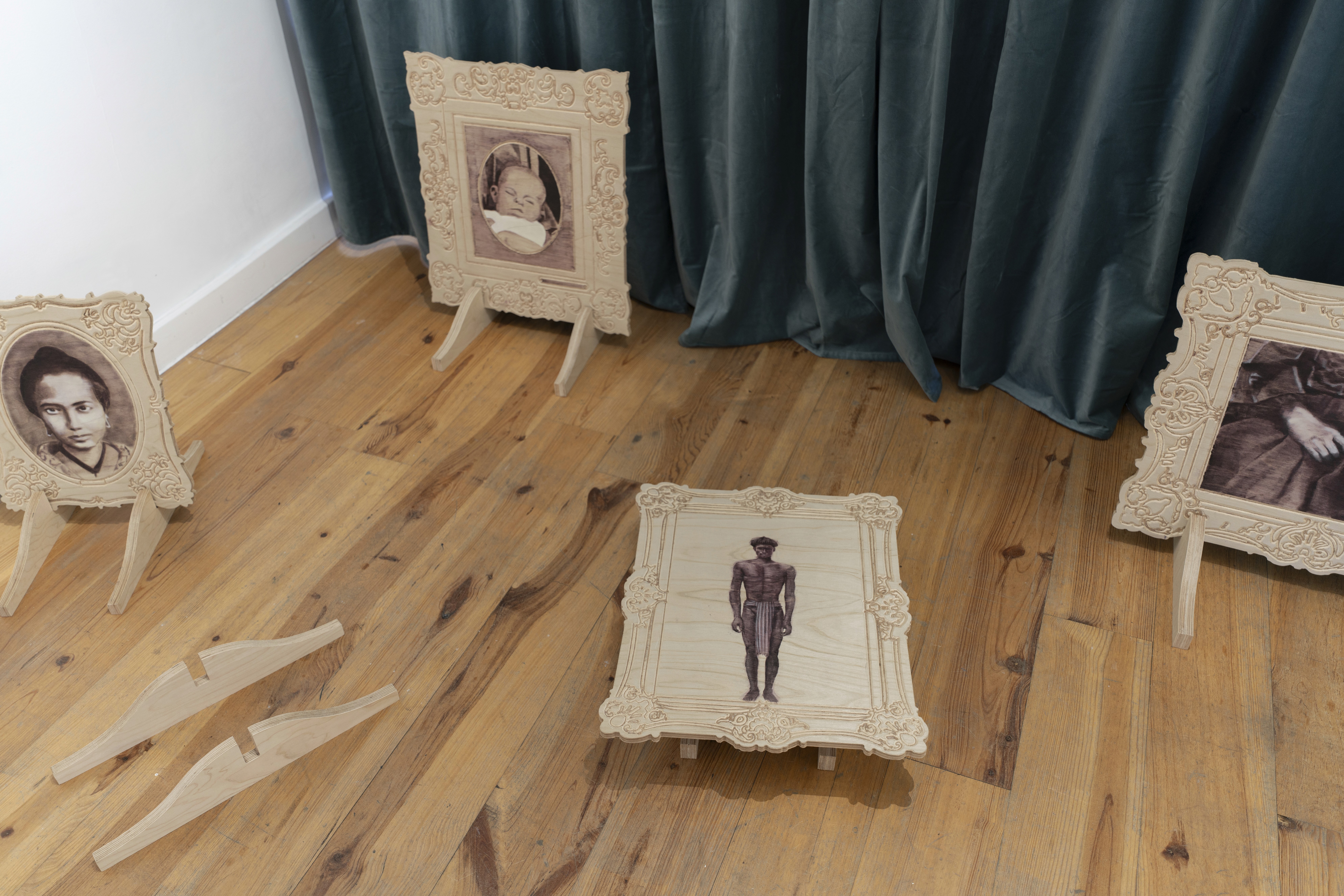Oil on birch plywood and wooden stands