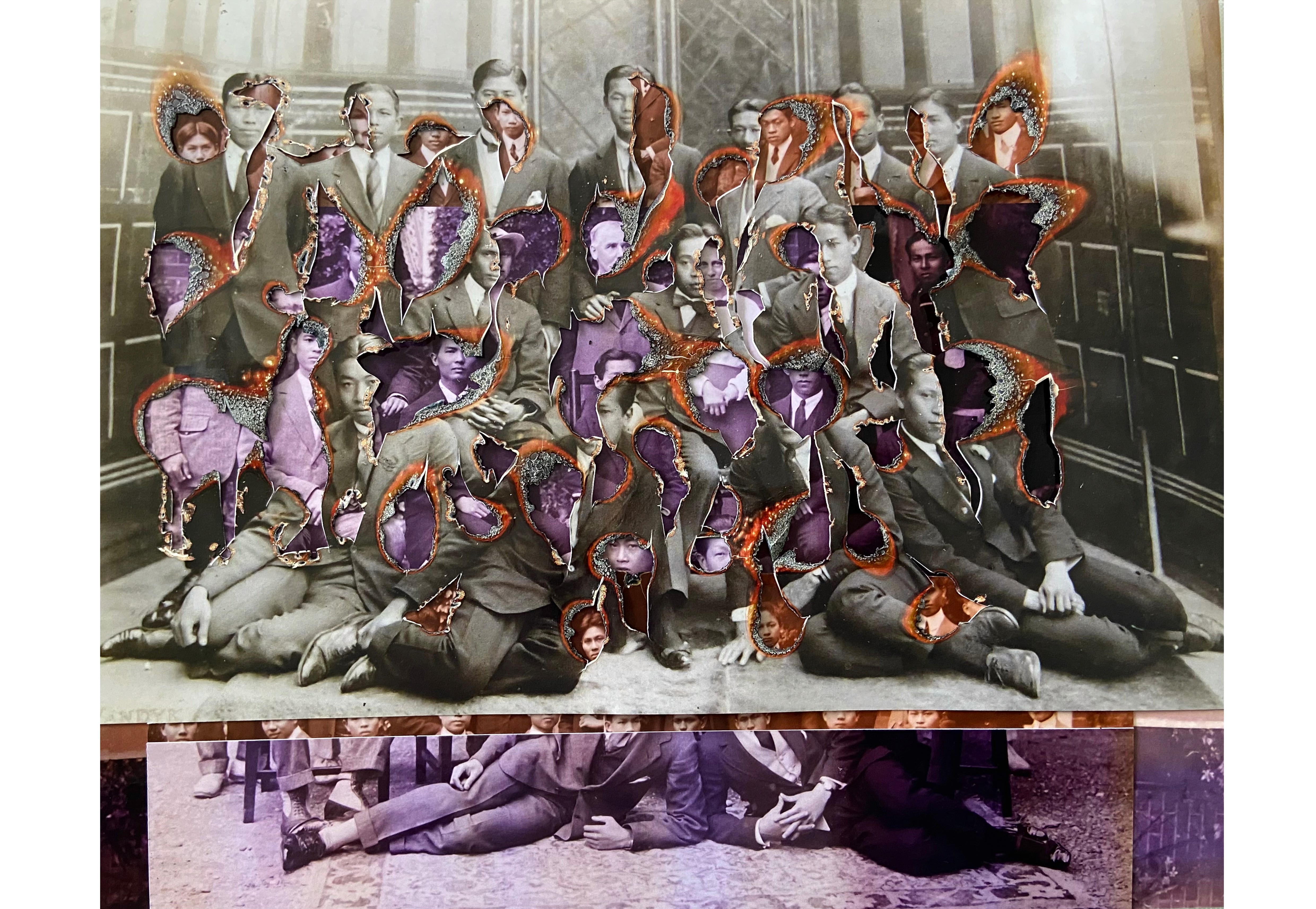 By bringing these disparate visual records into dialogue, Prapat Jiwarangsan (b. 1979, Bangkok) extends the legacy of the contemporary photographic movement, using collage and experimental techniques to spotlight class dynamics. His work reimagines photography as a tool for critical engagement, questioning power structures and historical representations. Reconstructing archival images and obscuring markers of class and identity, Prapat’s portraits blur distinctions between historical record and artistic intervention.
